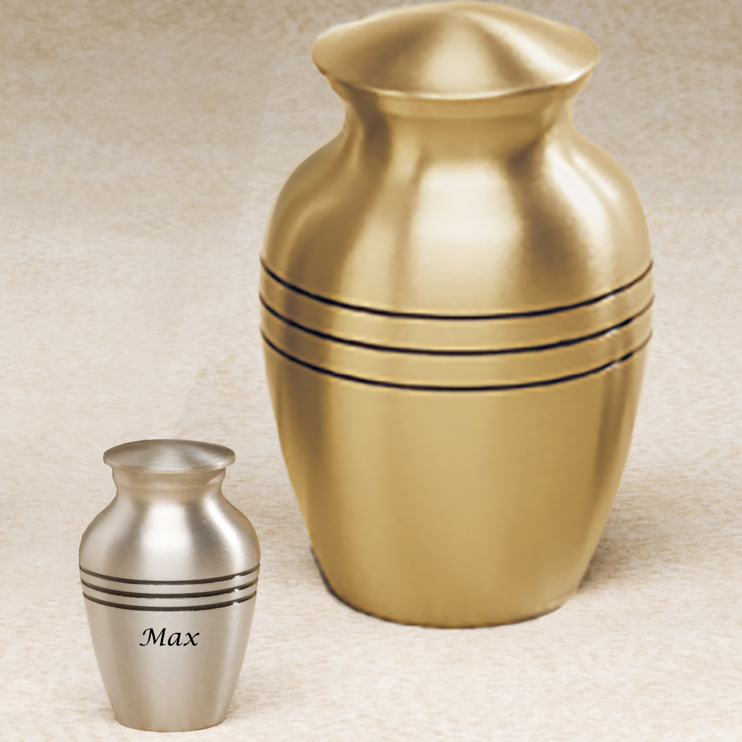 Available in four sizes with Goldtone & Silvertone Brushed finish. Top-opening threaded lid.